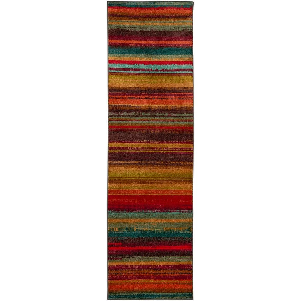 A bold, vibrant color palette of red, brown, blue, green and gold illuminates the distressed stripe motif of Mohawk Home’s Boho Stripe Area Rug in Multicolor. This silky soft style is available in runners, scatters, 5×8 area rugs, 8×10 area rugs, and other popular sizes, making it ideal for entryways, bedrooms, offices, living rooms, dining areas, kitchens, kids spaces and more. Flawlessly finished with advanced technology, this style features brilliant color clarity and richly defined details. This family friendly design is created with a premium synthetic yarn that provides proven stain resistance power and reliable resistance to daily wear and tear. Durable and designed to be kid and pet friendly, this area rug is suitable for high traffic areas. Keep your new rug and the flooring beneath looking their best with an essential all surface, earth conscious rug pad, crafted of 100% recycled fibers and certified Green Label Plus by The Carpet & Rug Institute!