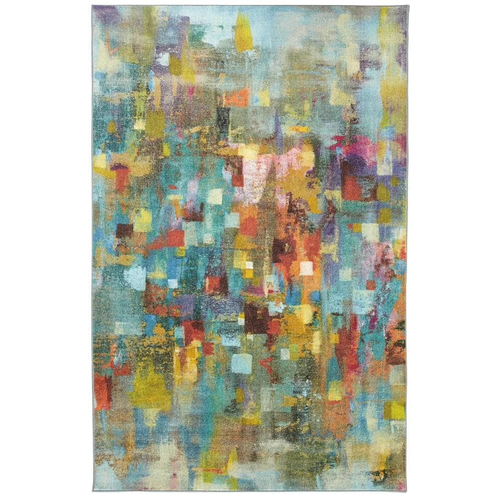 Modern pixilated square swatches of color combine in a blurry, beautiful work of abstract art for your floor in Mohawk Homes vibrant Confetti Canvas Area Rug in Multicolor. When it comes to color, the sky is no longer the limit with the infinite possibilities of Mohawk Homes revolutionary Prismatic Collection. Thoughtfully crafted in small batches utilizing Mohawk Homes exclusive Precision Dye Injected Printer, the Prismatic Collection is redefining printed rugs, literally one original design at a time. Each style in this collection features superior strength, stain resistance, and a cozy soft touch. Consciously created with EverStrand yarn, Mohawk Homes exclusive premium recycled polyester produced from post-consumer plastic water bottles, this collection offers environmentally friendly options that are as easy on the eyes as they are the world around us.