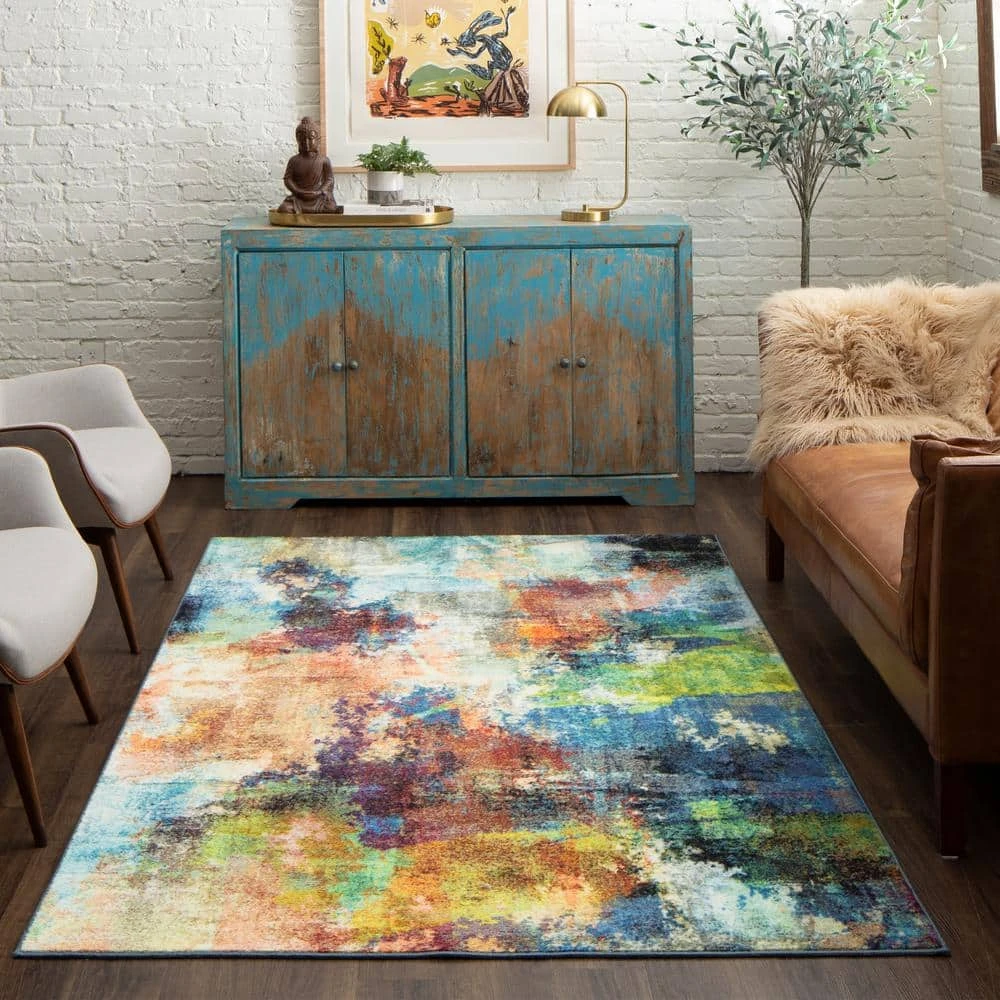 Mohawk takes abstract art to the floor with the multicolored Decollage Area Rugs splashes of contemporary color and modern painterly inspired motif. Hues of pure white, light aqua, lime green, indigo blue, dark navy, neutral beige and chocolate brown invigorate any space. When it comes to color, the sky is no longer the limit with the infinite possibilities of Mohawk’s revolutionary Prismatic Collection. Thoughtfully crafted in the U.S.A. in small batches utilizing Mohawk’s exclusive precision dye injected technology, the Prismatic Collection is redefining printed rugs, literally one original design at a time. Each style in this collection features superior strength, stain resistance, and a cozy soft touch. Consciously created with EverStrand yarn, Mohawk’s exclusive premium recycled polyester produced from post-consumer plastic water bottles, this collection offers environmentally friendly options that are as easy on the eyes as they are the world around us.