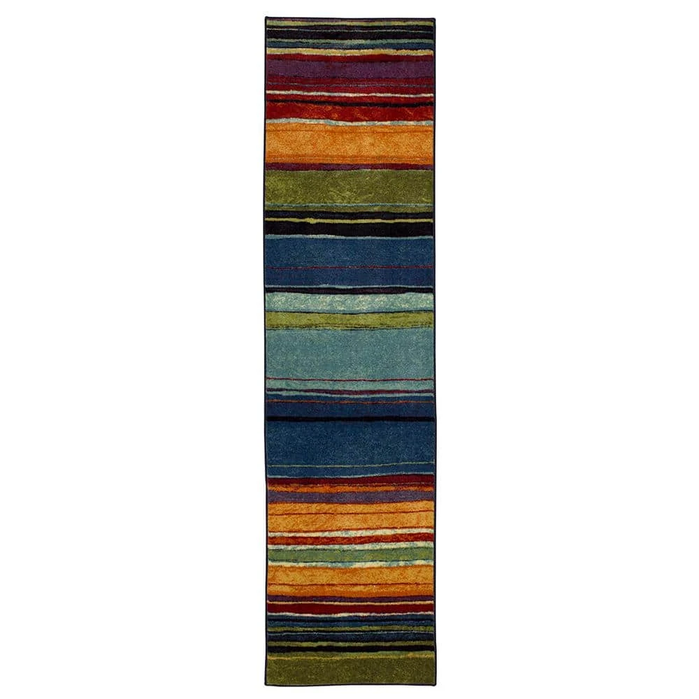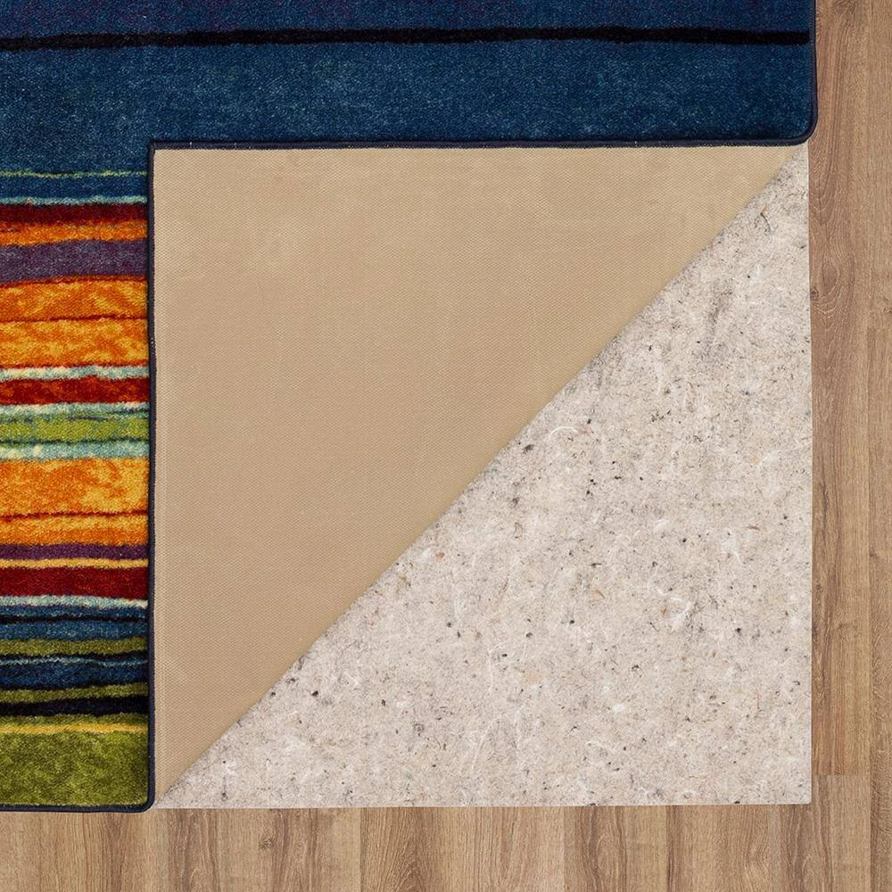 Saturated shades of blue, green, red, orange, yellow and purple line Mohawk Home’s Rainbow Area Rug in Multicolor. Available in runners, scatters, 5 ft. x 8 ft. area rugs, 8 ft. x 10 ft. area rugs and other popular sizes, this transitional style features modern brushstroke inspired stripes of bold contemporary color. Beautiful for kitchens, dining areas, offices, kids spaces, nurseries, living rooms, bedrooms and more, this area rug is versatile and durably designed. This vibrant area rug was created with an advanced technology built for brilliant color and design clarity. Constructed on a stain resistant nylon base, this area rug is resilient and ideal even for high traffic areas. Pet and kid friendly, simply vacuum regularly and spot clean as needed with a solution of mild detergent and water to keep this rug looking its best. Keep your new rug and the flooring beneath looking their best with an essential all surface, earth conscious rug pad, crafted of 100% recycled fibers and certified Green Label Plus by The Carpet and Rug Institute.