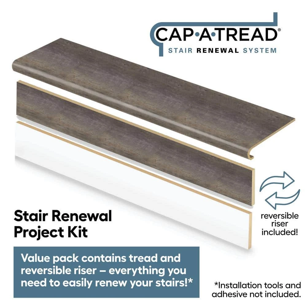 - New; stair renewal project kit – value pack contains tread and reversible riser – everything you need to easily renew your stairs; kit includes 1 tread and 1 reversible riser; installation tools and adhesive not included