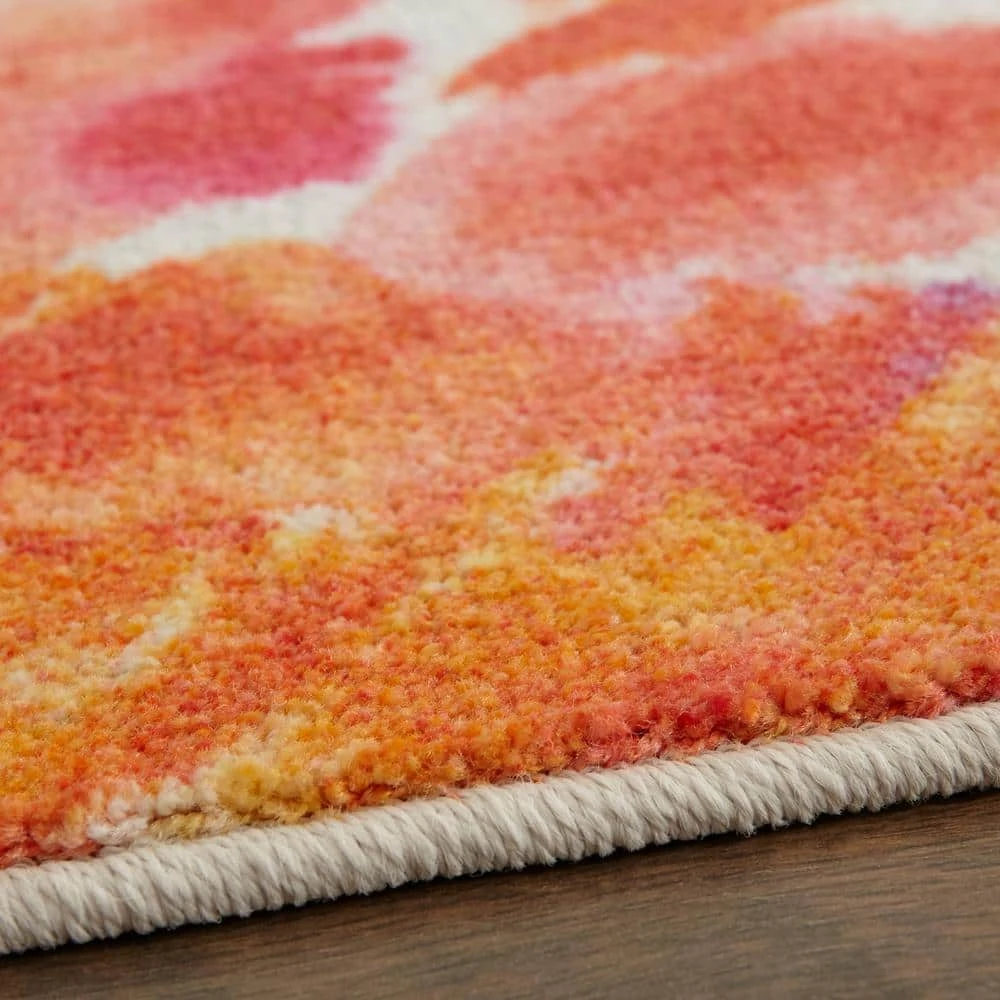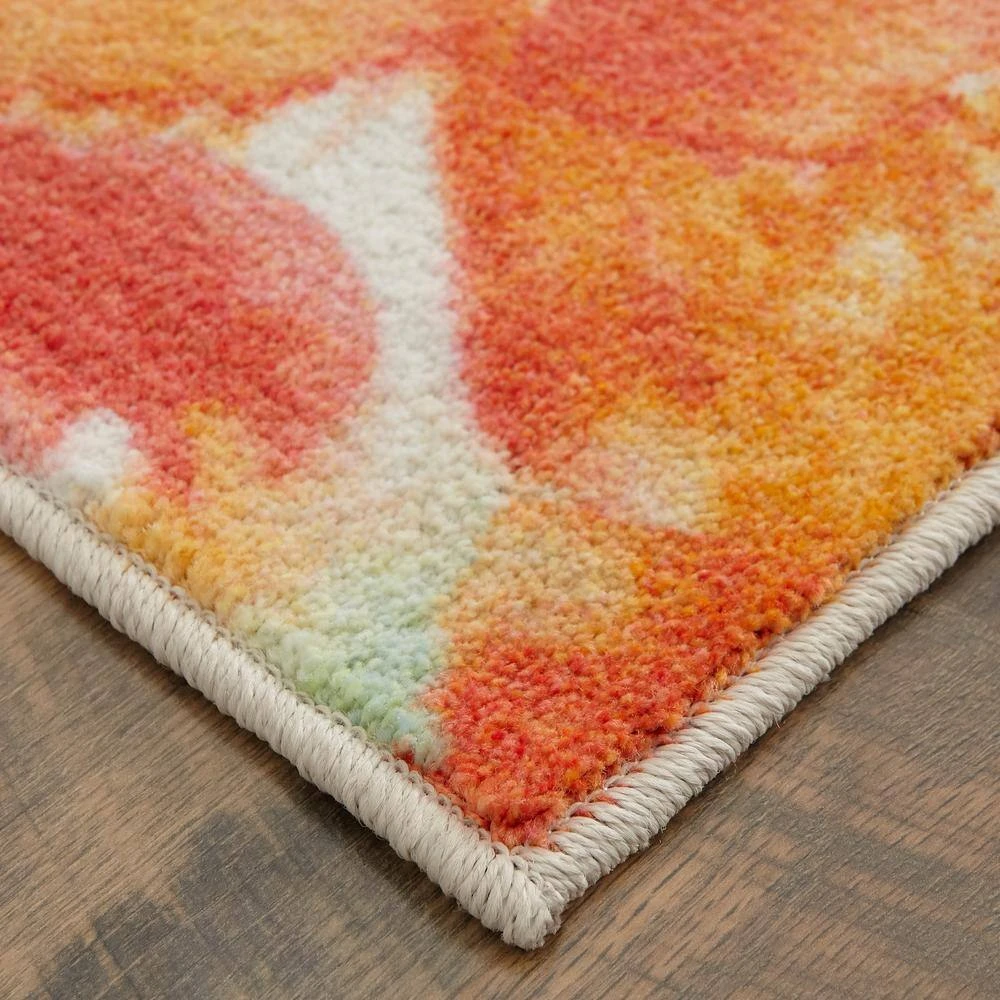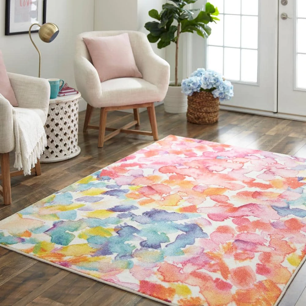 Abstract watercolor blossoms bloom in contemporary colors of pink, aqua, red, orange and yellow in the floral inspired style of Mohawk Homes Sunwashed Dream Area Rug in Multicolor. When it comes to color, the sky is no longer the limit with the infinite possibilities of Mohawk Homes revolutionary Prismatic Collection. Thoughtfully crafted in small batches utilizing Mohawk Homes exclusive Precision Dye Injected Printer, the Prismatic Collection is redefining printed rugs, literally one original design at a time. Designed on a plush EverStrand woven base, each style in this collection features superior strength stain resistance and a cozy soft touch. Consciously created with EverStrand yarn, Mohawk Homes exclusive premium recycled polyester produced from post-consumer plastic water bottles, this collection offers environmentally friendly options that are as easy on the eyes as they are the world around us.
